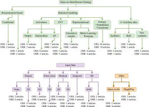 Open-set semantic segmentation remains yet a challenging task, not only due to the inherent challenges of pixel-wise classification but also the precise segmentation of categories not seen during training. The pursuit of that task is rapidly growing in the Computer Vision community, urging the need to organize the literature. In this paper, we extend our previous work by conducting a more comprehensive systematic mapping of the open-set segmentation literature between January 2001 and January 2023 and proposing a novel taxonomy. Our goal is to provide a broad understanding of current trends for the open-set semantic segmentation (OSS) task defined by existing approaches that may influence future methods. By characterizing methodologies in terms of open-set identification strategies, data inputs, and other relevant aspects, we present a structured view of how researchers are advancing in the field of open-set semantic segmentation. To the best of the authors’ knowledge, this is the first systematic review of OSS methods. Moreover, we apply the proposed taxonomy to selected methods for open-set recognition, outlining important similarities and differences of such a closely related field.